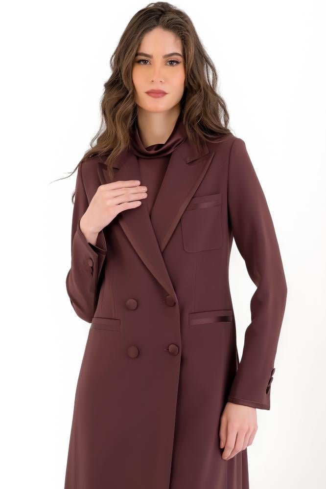 قطعة عملية غير معتادة مليئة بالتفاصيل الدقيقة بخامة كريب تناسب جميع فصول السنة ومزينة بالساتان ومبطنة بالكامل