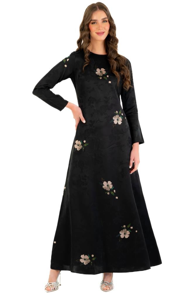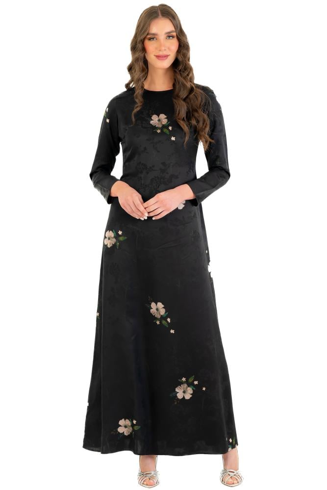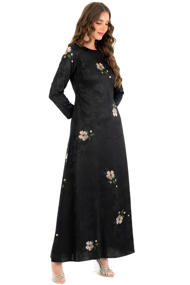 فستان حرير فسكوز خفيف الوزن باكمام وواسع من الاسفل .