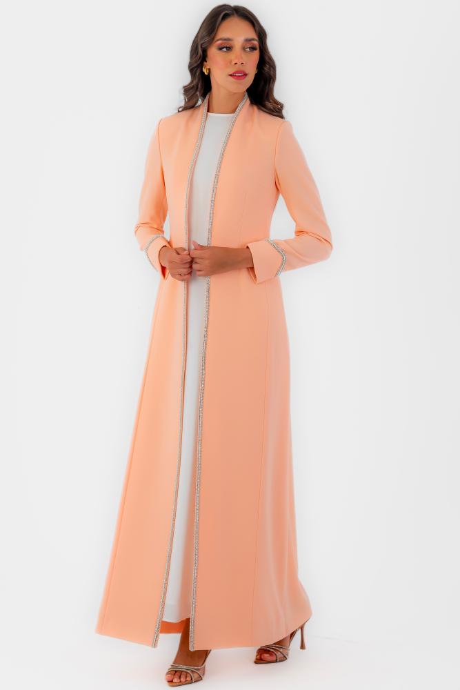 ملاحظة : مع العباية طرحة بلون مشمشي شيفون ساده من افضل الخامات